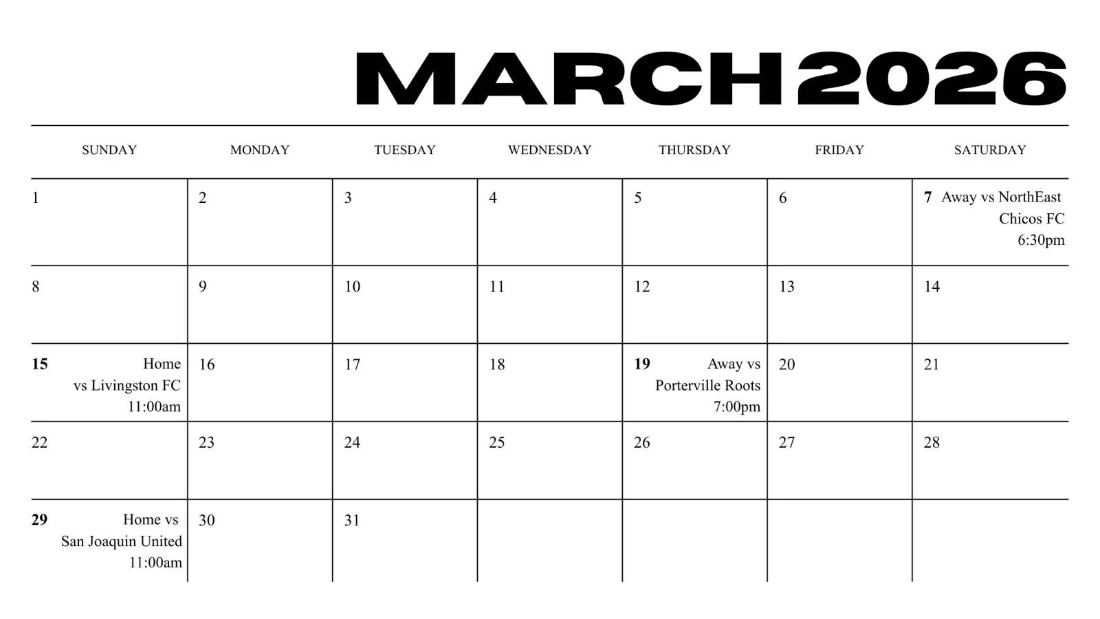 2026 Lightning League Match Calendar